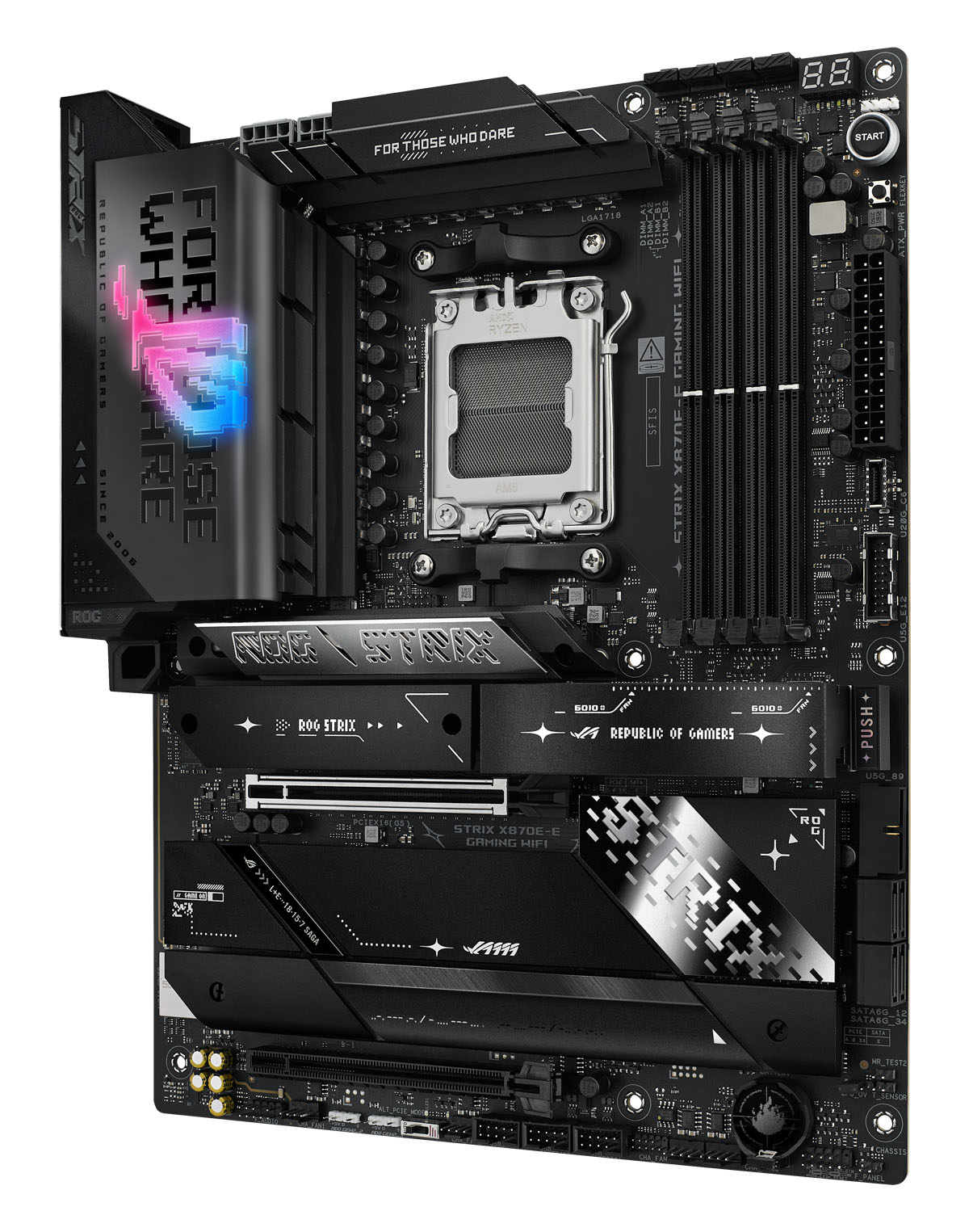 Chipset: AMD X870E / Process Socket: Base AM5 / Memory Support: 4x DDR5 / Form Factor: ATX