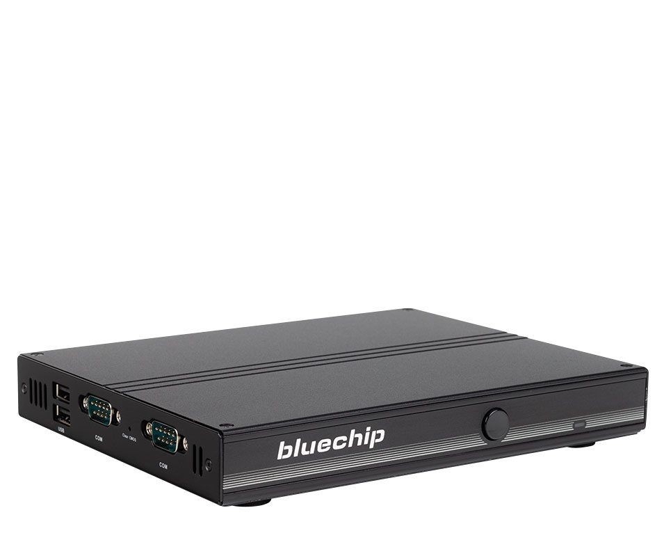 bluechip BUSINESSline Mini-PC, Intel Prozessor N100 bis 3,40 GHz, 8 GB DDR4 3200 MHz RAM, 120 GB NVMe SSD, Intel UHD Grafik, Windows 11 Pro, Wi-Fi 6, Bluetooth 5.3, 2× RJ45 1 Gbit/s, 2× HDMI 2.0a + 1× DisplayPort 1.4, passiv gekühlt, 45 W externes Netzteil, 19 × 2,6 × 14,9 cm