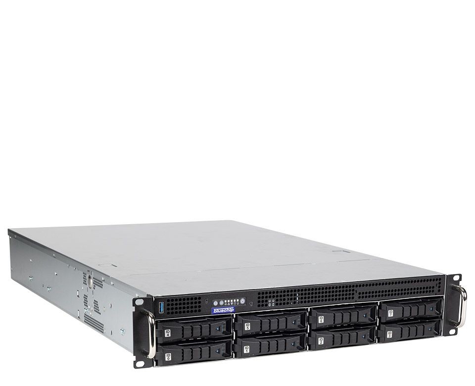 bluechip SERVERline R32317r, AMD EPYC 4124P bis zu 5.10 GHz, 32 GB DDR5 ECC 5600 MHz RAM maximal 192 GB, 2 × 960 GB SATA SSD, ASPEED AST2600 Grafik, 2 × Gigabit-LAN, 2HE Rack-Server, redundantes 550 W 80+ Platinum Netzteil
