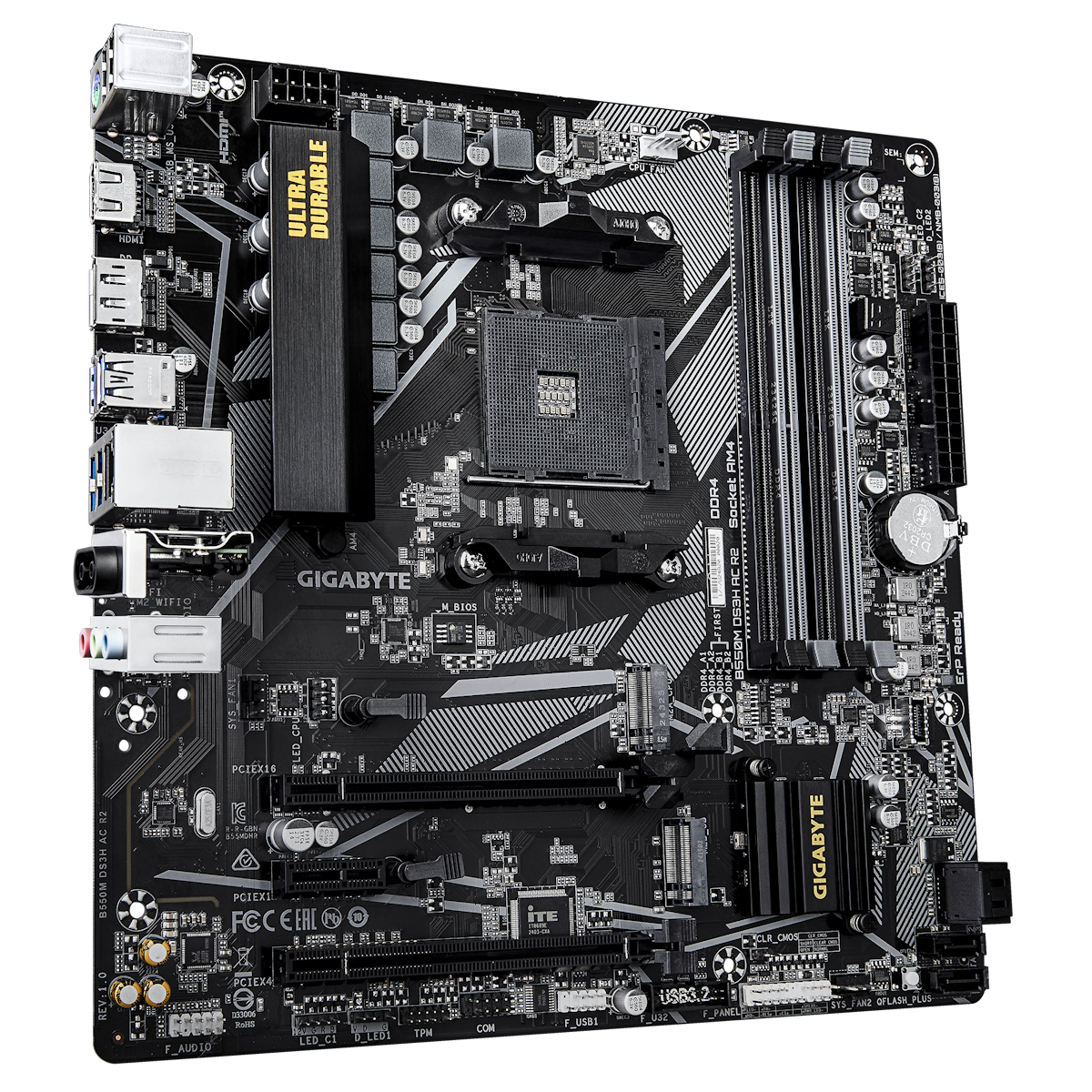 Chipsatz: AMD B550 / Prozessorsockel: Sockel AM4 / Speicherunterstützung: 4x DDR4 / Formfaktor: Micro-ATX