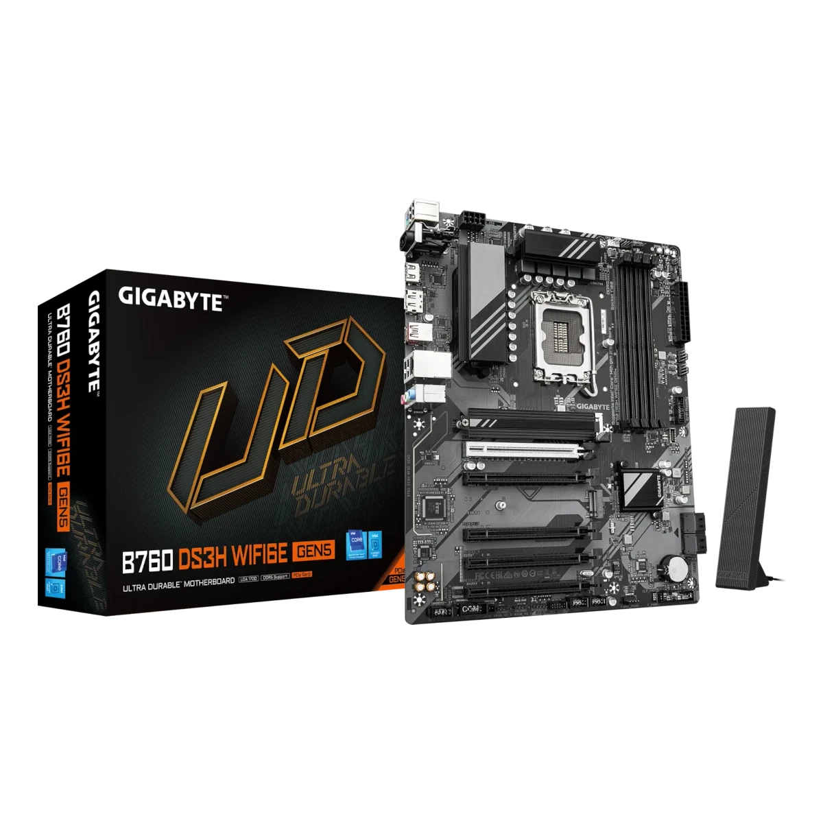 Chipset: Intel B760 / Process socket: Base 1700 / Memory support: 4x DDR5 / Form factor: ATX