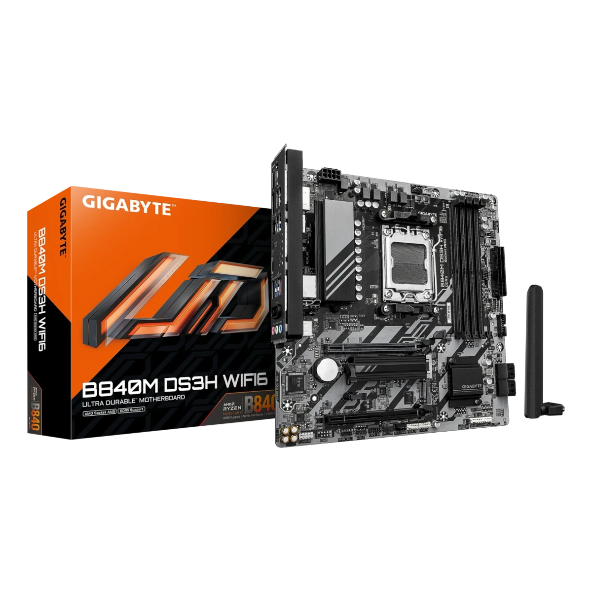 Chipsatz: AMD B840 / Prozessorsockel: Sockel AM5 / Speicherunterstützung: 4x DDR5 / Formfaktor: Micro-ATX