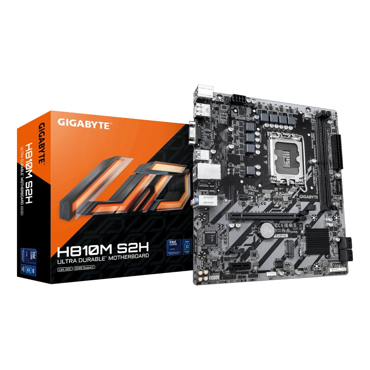 Chipsatz: Intel H810 / Prozessorsockel: Sockel 1851 / Speicherunterstützung: 2x DDR5 / Formfaktor: Micro-ATX