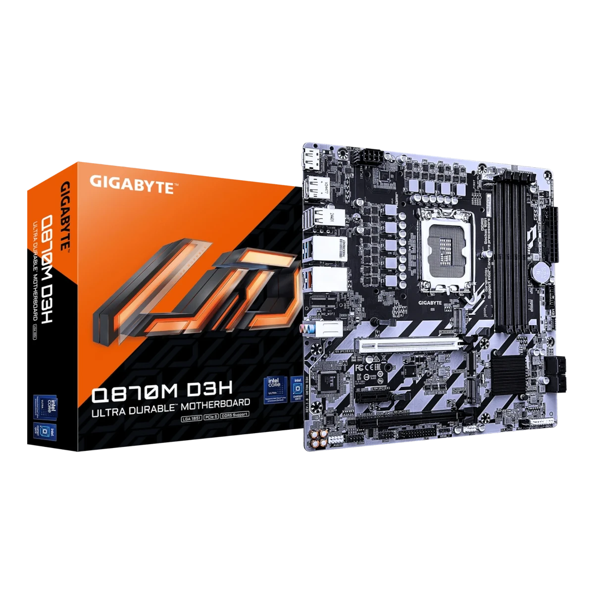 Chipsatz: Intel Q870 / Prozessorsockel: Sockel 1851 / Speicherunterstützung: 4x DDR5 / Formfaktor: Micro-ATX