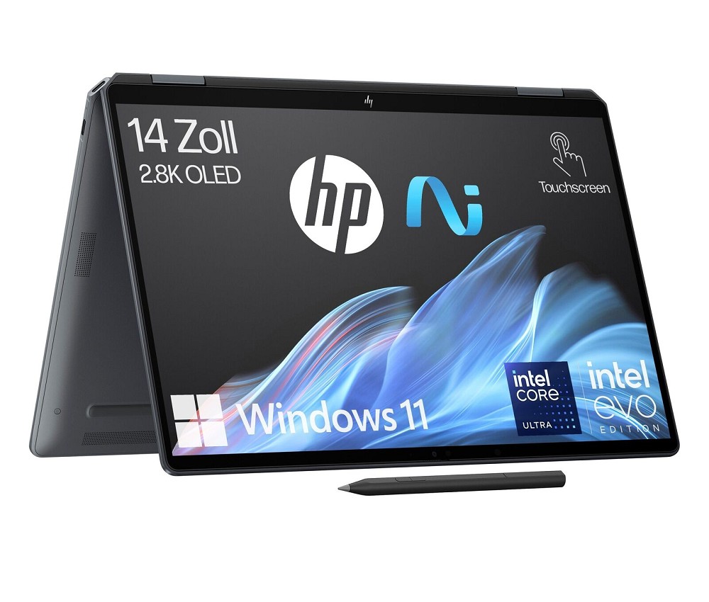 Typ: Notebook (Convertible)Display: 14″, 2880×1800, 16:10, 243ppi, 120Hz, Multi-Touch, glare (glänzend), OLED, 400cd/m², 500cd/m² (HDR), Blaulichtfilter, VESA DisplayHDR 400, Glas (Corning Gorilla Glass 5), 0.2ms, 1.000.000:1, 100% DCI-P3CPU: Intel Core Ultra 7 256V, 4C+4c/8T, 2.20-4.80GHz, 12MB+14MB Cache, 17-37W TDP (PBP/MTP), Codename “Lunar L…HP OmniBook Ultra Flip 14-fh0075ng, Eclipse Gray, Core Ultra 7 256V, 16GB RAM, 1TB SSD, DE