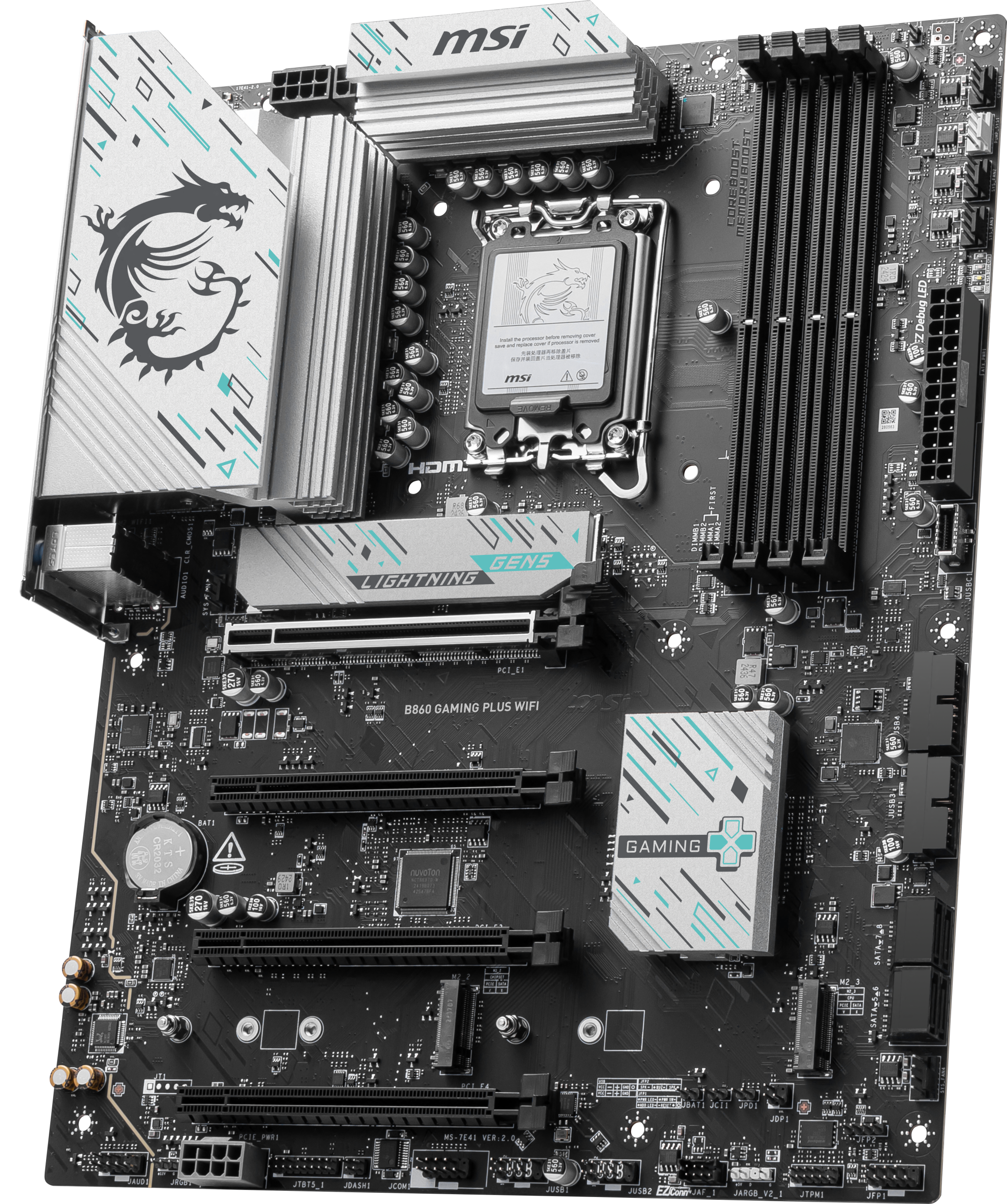 Chipset: Intel® B860 / Process socket: Base 1851 / Memory support: 4x DDR5 / Form factor: ATX
