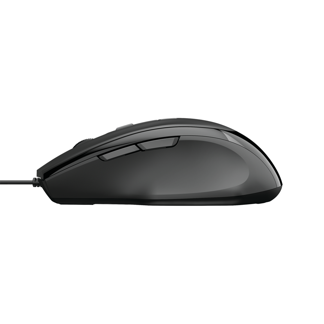 Wired mouse with comfortable shape / Speed selection button (800/1200/1600/2400 DPI) / 2 thumb buttons: browser forward/back / Comfortable shape for relaxed holding / Cable length 160cm