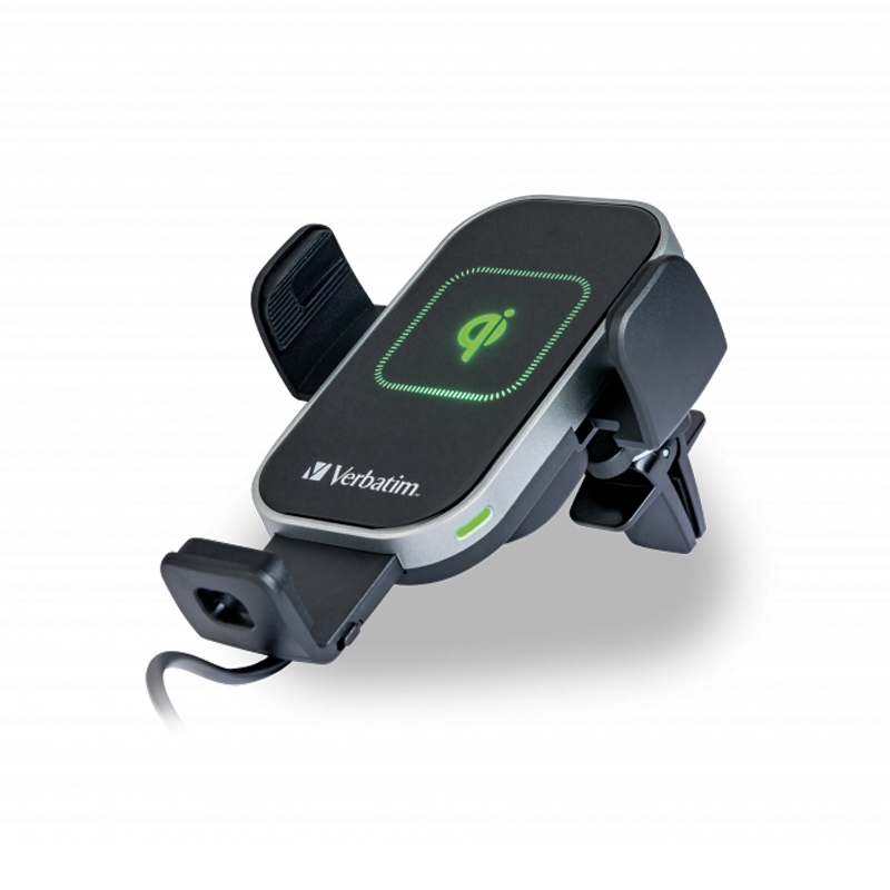 Car mobile phone holder with charging function / for Qi-enabled smartphones / Qi-certified / Turning 360° / Cable: 1 m USB-C on USB-A cable